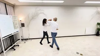 女性に踊っている最中かなりの新鮮味を感じさせる動きです。退屈とは無縁になるかな。女性の方を見て、しっかり天使の輪に手をそわせてください。反転が大変ですね。女性の行ったあとのスペースに入り込むという技があります。そうすると男性は楽になる。