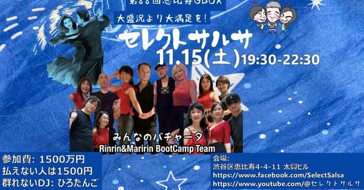 土曜はこちらに行きます。セレクト・サルサ、かつては人が来すぎて踊る場所が無いなんて事態も起こりました、超人気イベントでした。コロナから復活が最近(去年!?)でしたが、今も結構来ますね。セレクトだから行くみたいな層もいる、、、なんなんでしょうね。このロイヤリティ(笑)
