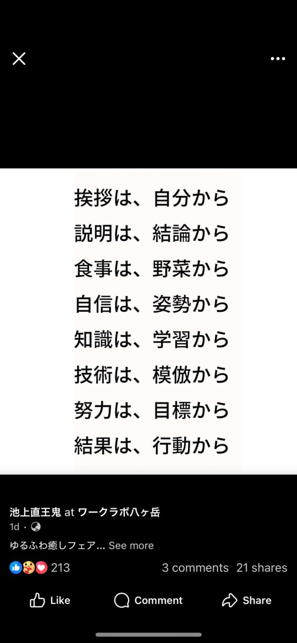 これは私だけなのだろうか、”挨拶”部分を意外に感じてしまうのは?!(自信は姿勢からってのも、多少意外に思う人も居るかも知れませんね) でも最近特に思う。挨拶は自分からするべきものだろうと。
